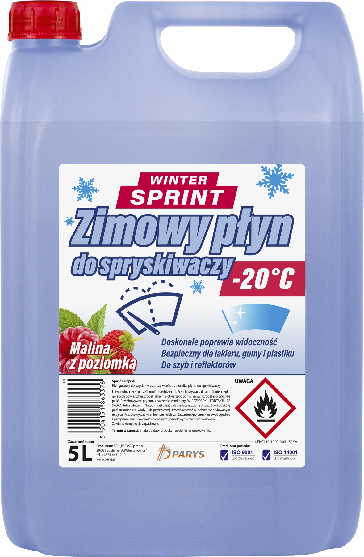 Zimowy płyn do spryskiwaczy -20 oC, o zapachu malina z poziomką, opakowanie 5L